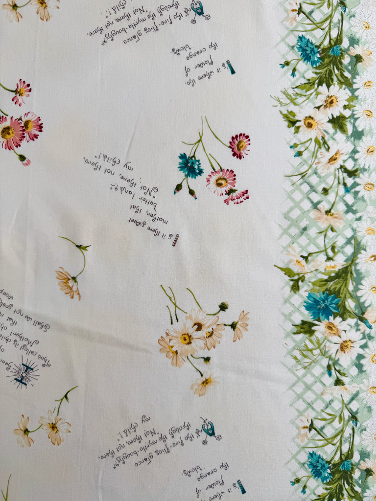 100% quilting weight cotton.43" wide. Trellis border along the selvedge edges.