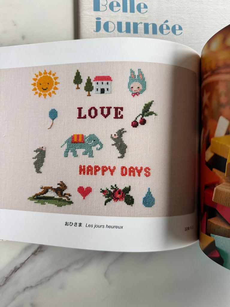 Adorable cross stitch projects from Aki Takahashi! This cross stitch set includes a book with photos of complete cross stitch projects, and a book of instructions.