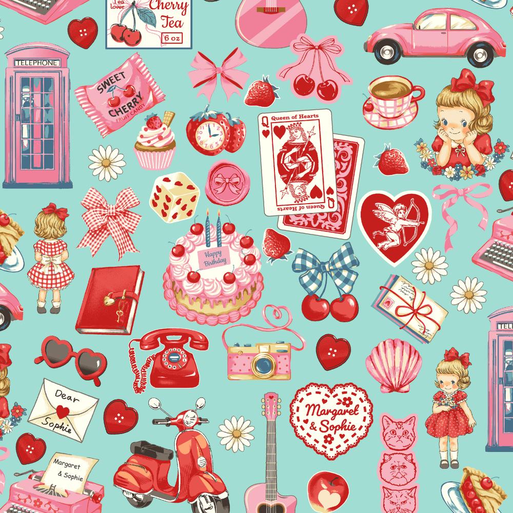 100% quilting weight cotton. 43" wide. Full of cute designs filled with everything a girl dreams of! Perfect for Fussy-Cutting!