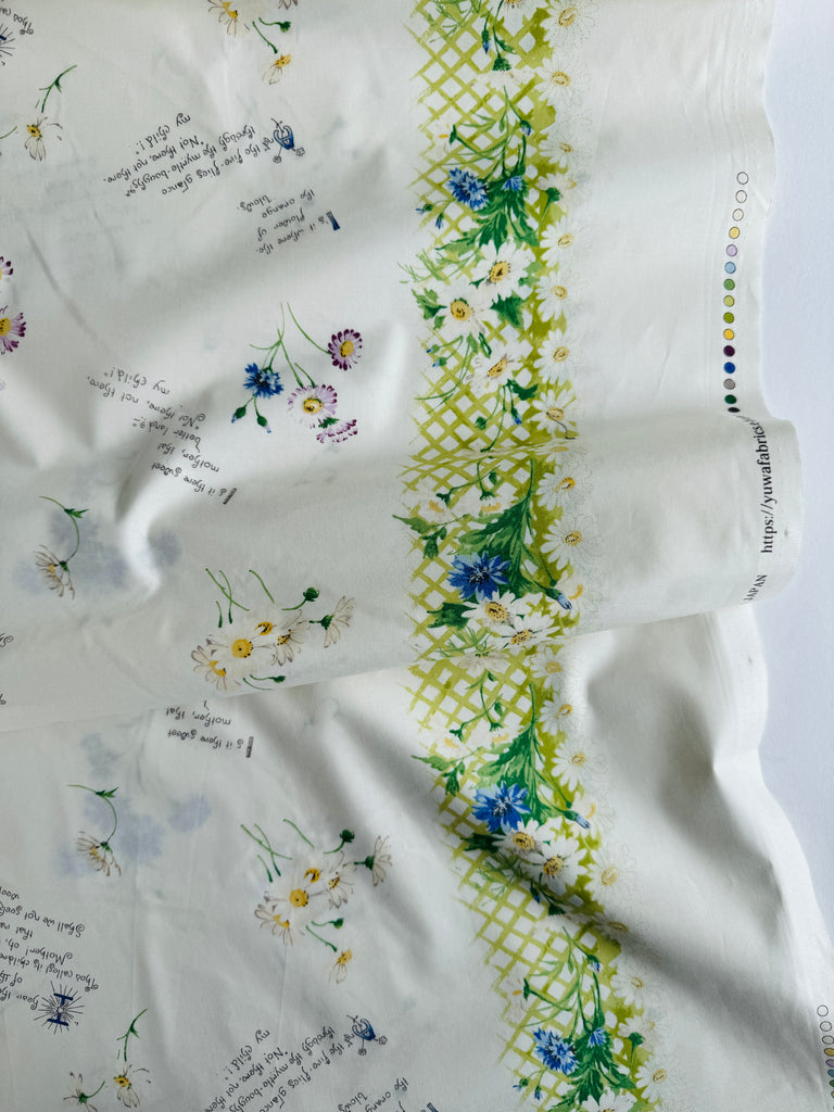 100% quilting weight cotton.43" wide. Trellis border along the selvedge edges.