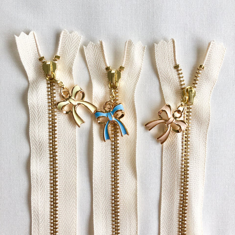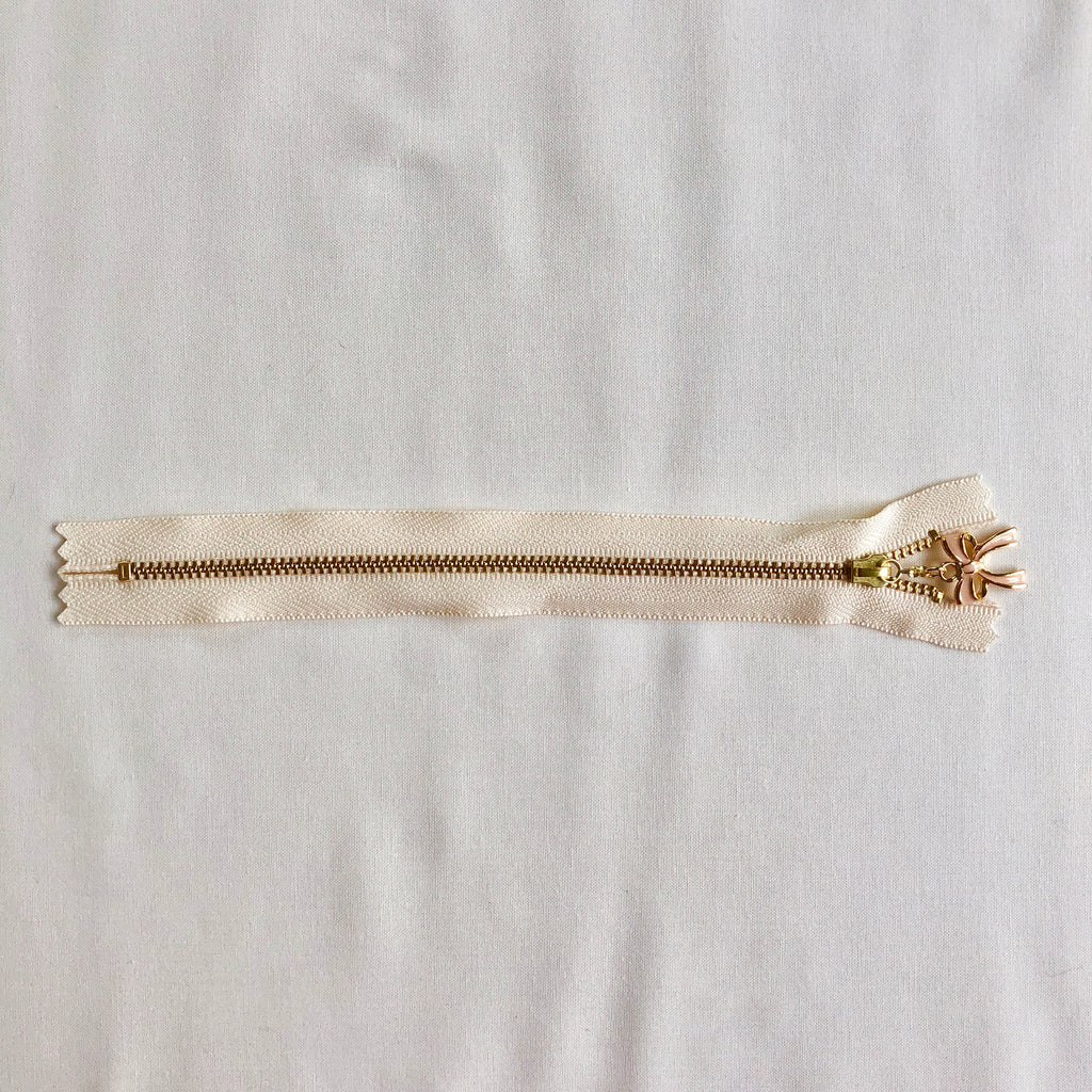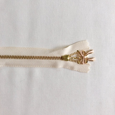 Beautiful zippers from Atsuko Matsuyama's shop in Japan. Each zipper is 20 cm = 7.87 inches with off white tape. Metal zipper teeth. 9” from tape end to tape end.