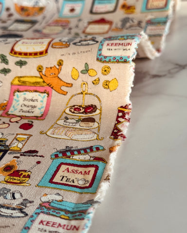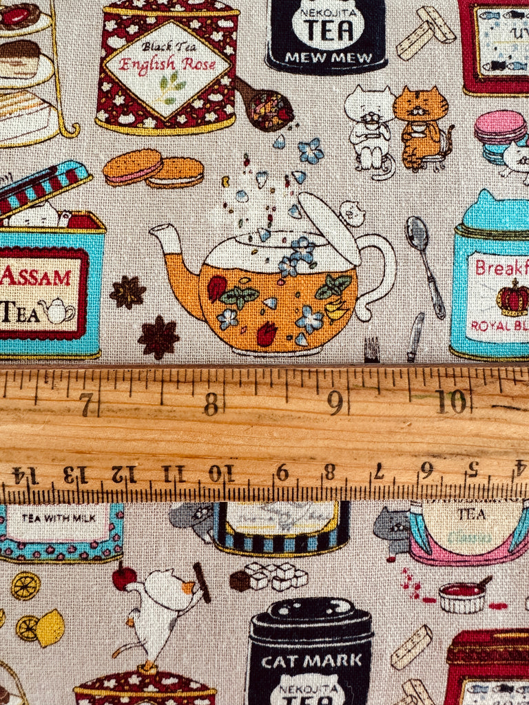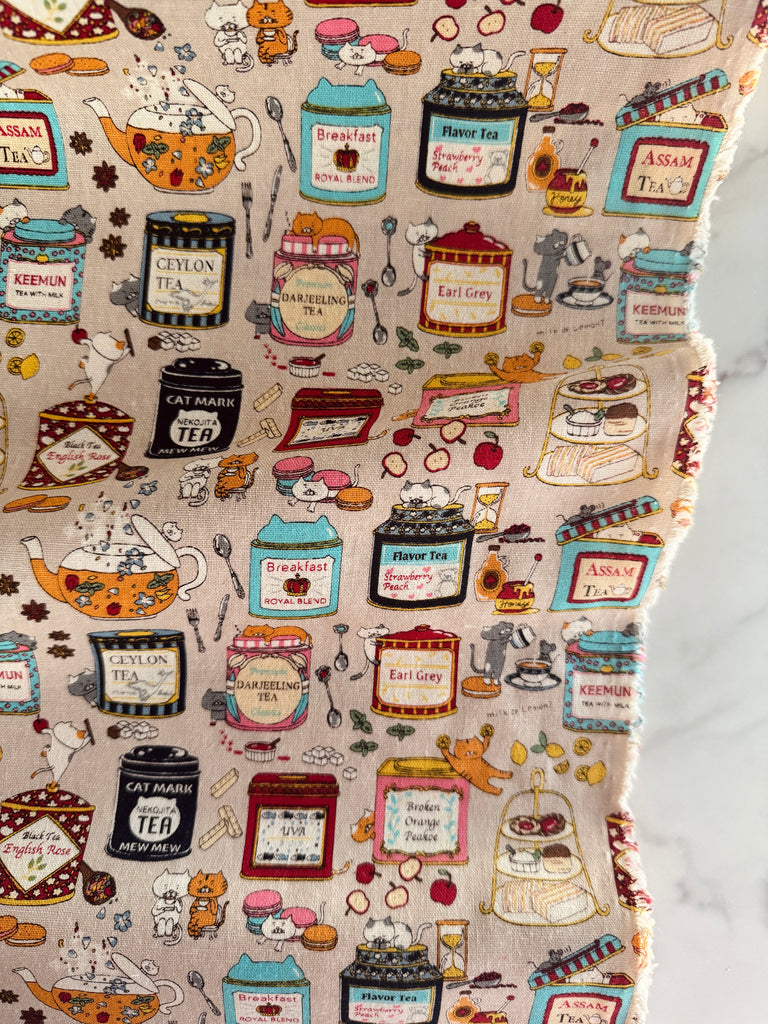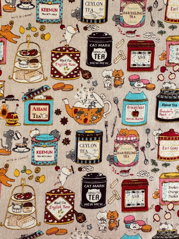 85% cotton and 15% Linen. 43" wide. This print is heavier than quilting weight. Although, considered a canvas, it is a light canvas making it easy to sew. Perfect for garments, bags and pouches, and quilts!